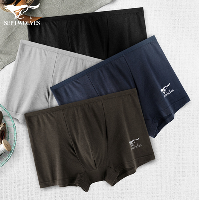 七匹狼内裤男平角裤纯棉无痕男士窄边短裤青年四角裤头透气弹力
