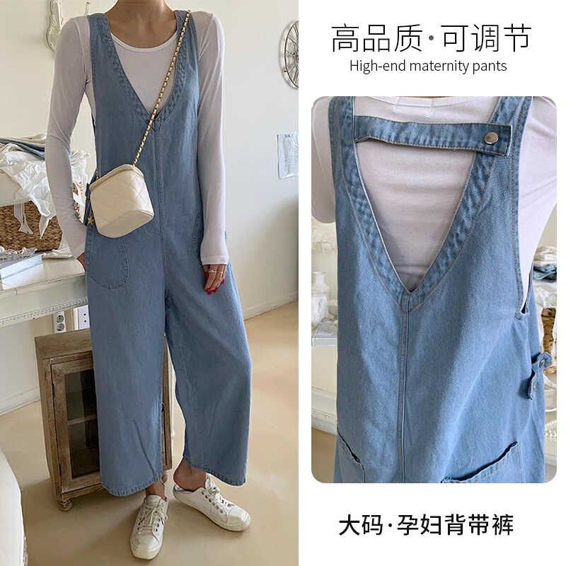 孕妇装夏季新款外穿透气背带裤九分托腹裤子宽松减龄孕妇裤8158