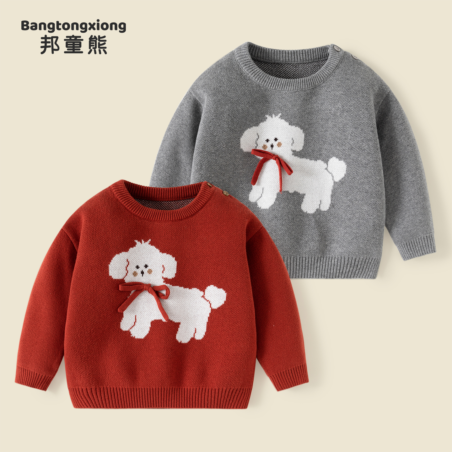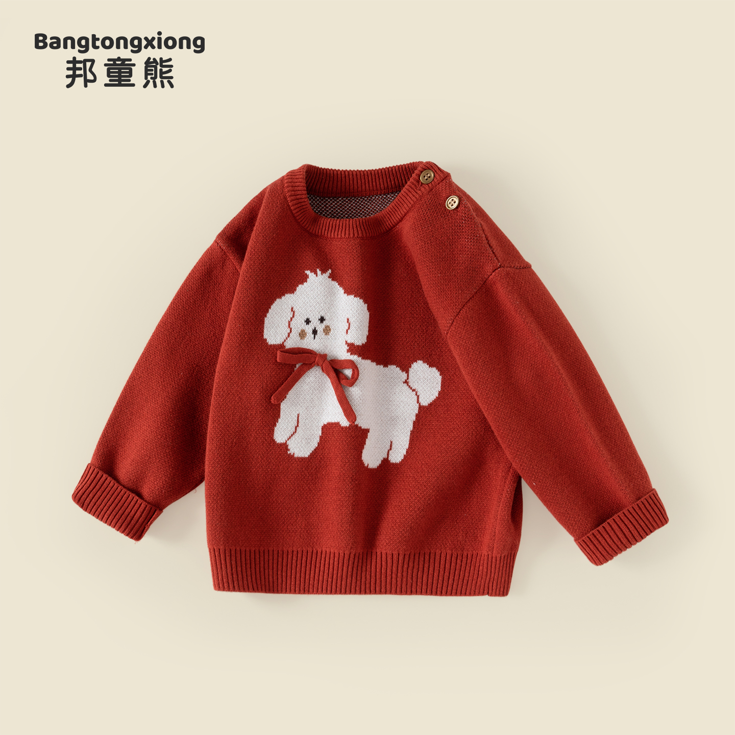 宝宝毛衣秋冬婴儿针织衫男童打底衫儿童上衣红色2025新款冬季外套