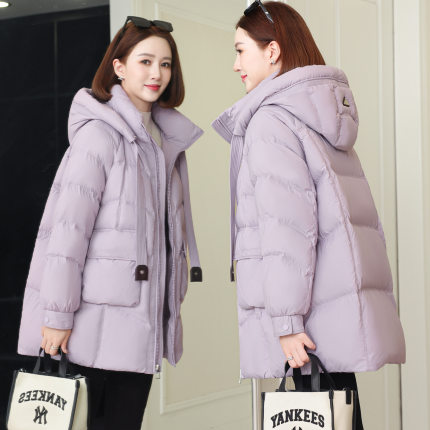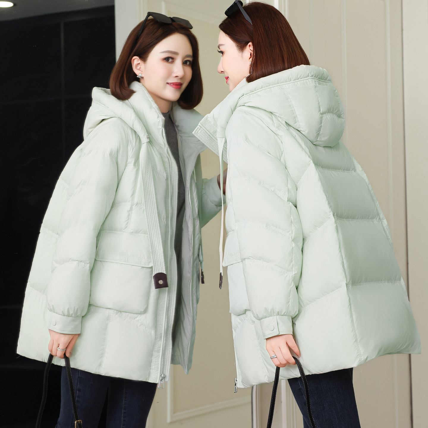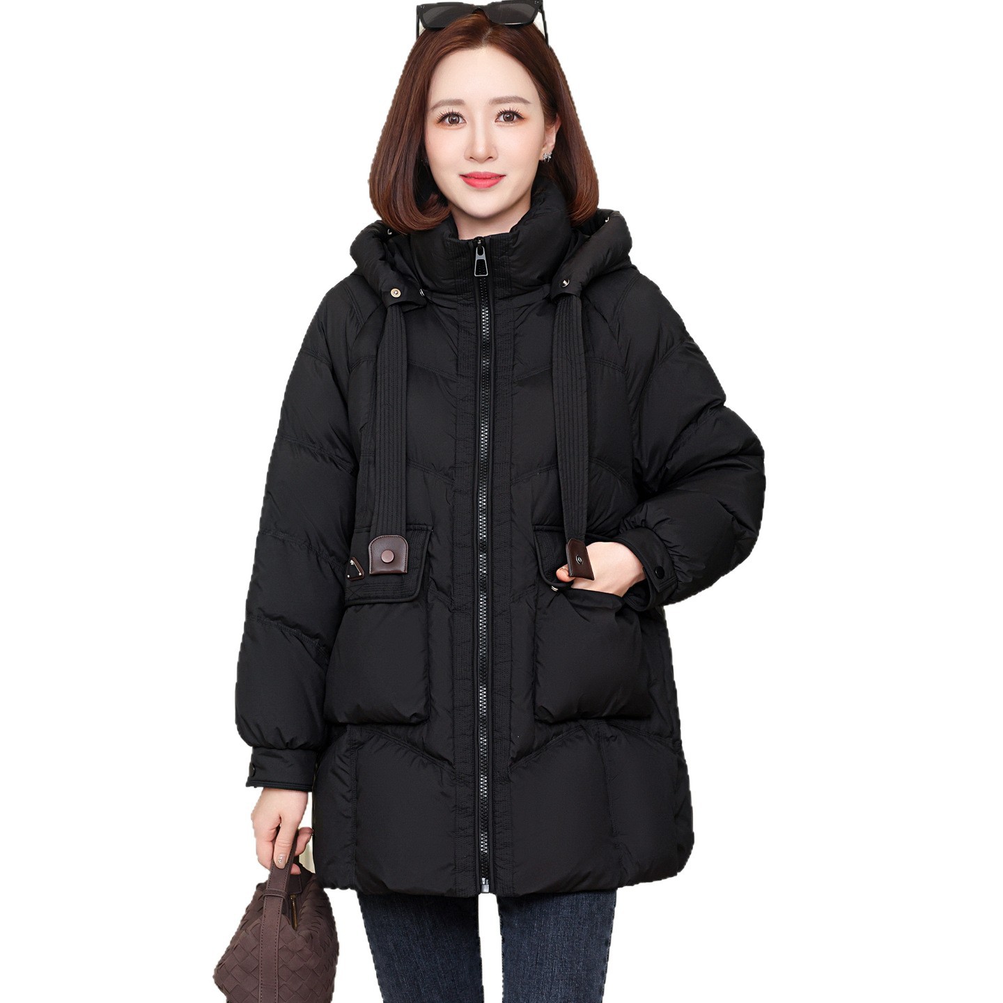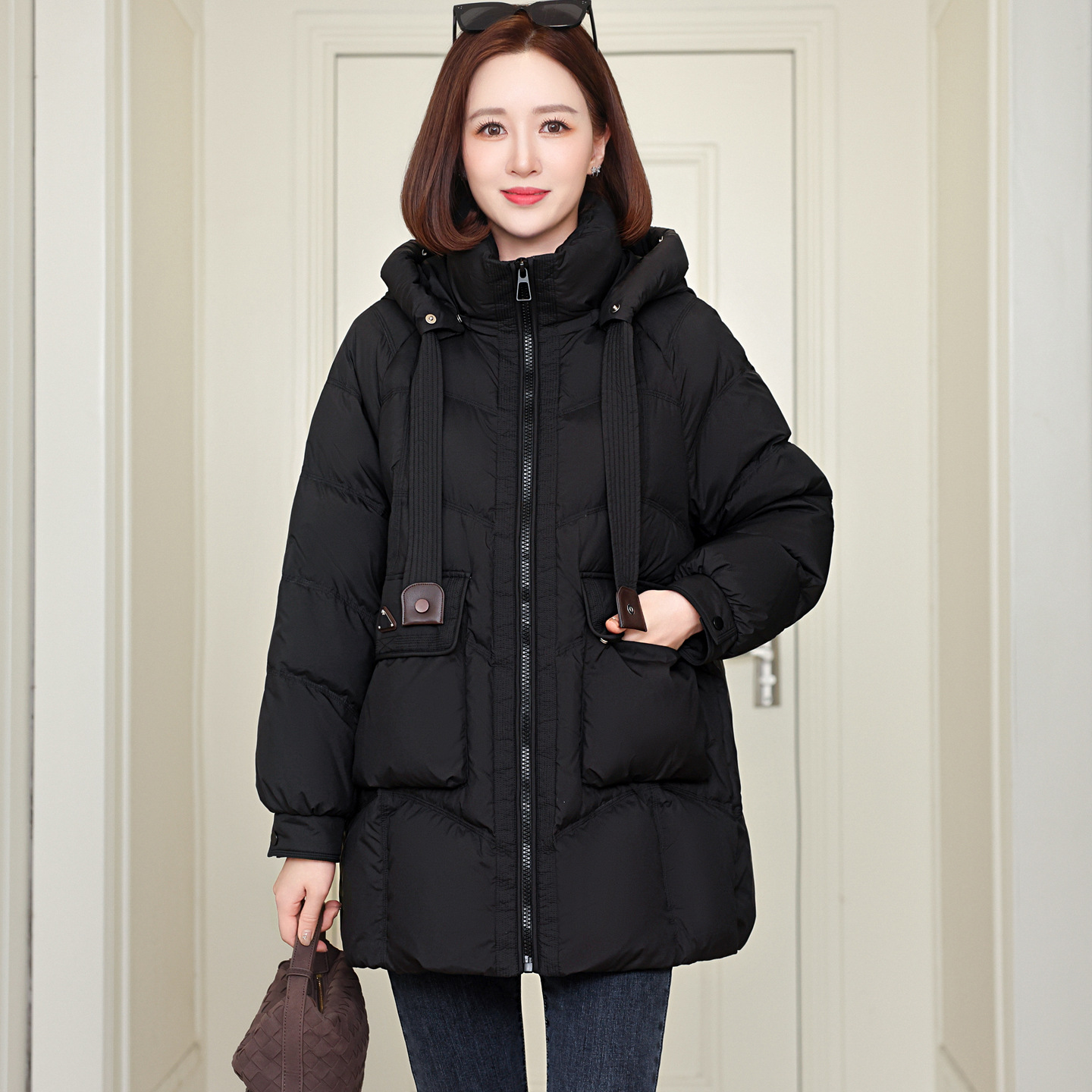 2025新款中年女士中长款羽绒服连帽保暖加厚韩版宽松鸭绒高端外套