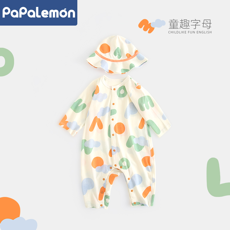 柠檬爬爬宝宝连体衣纯棉新生婴儿衣服夏季薄款哈衣爬服长袖空调服