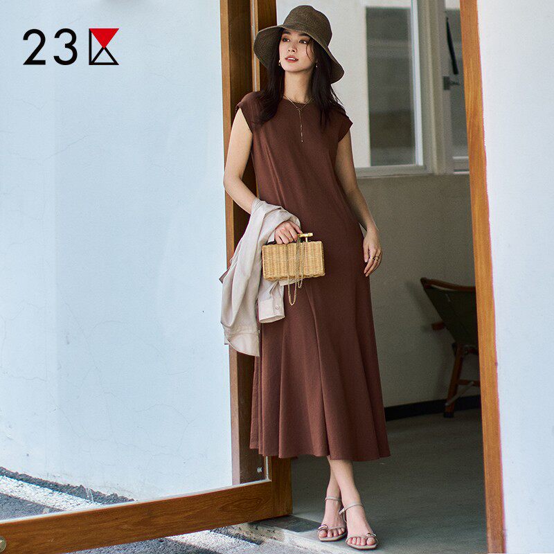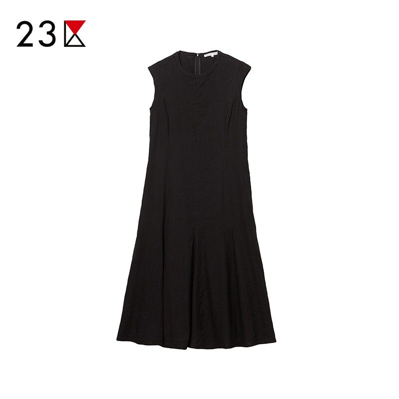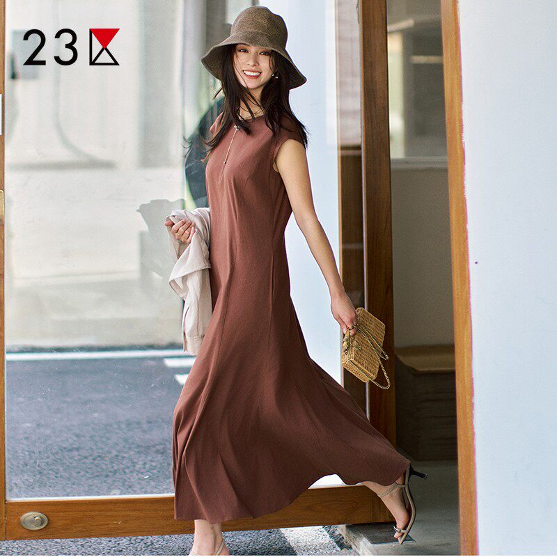 23区日系秋季通勤修身亚麻混纺圆领无袖连衣裙内搭连身裙商场同款