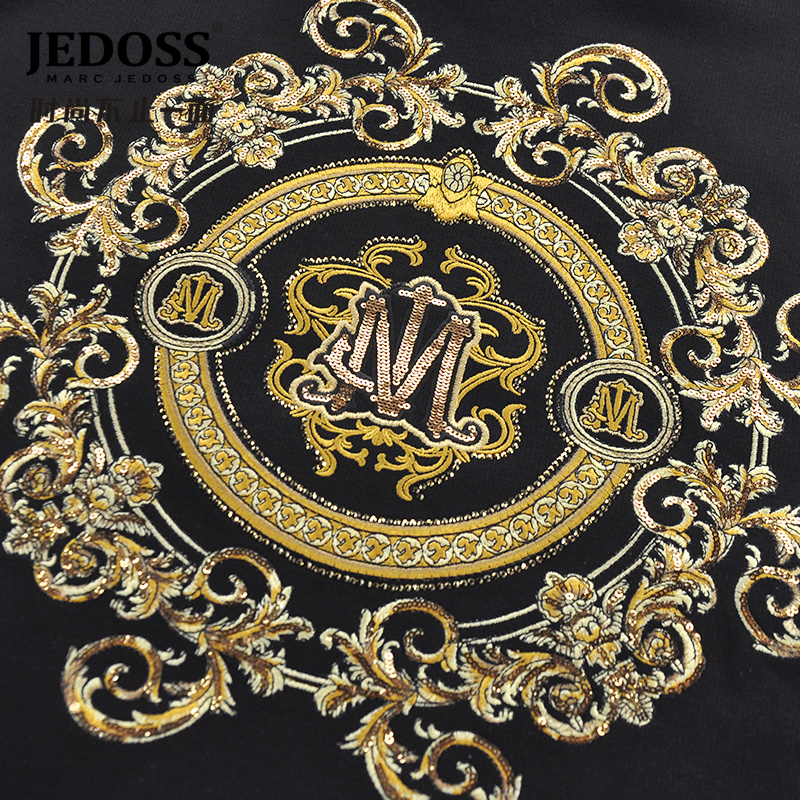 JEDOSS/爵迪斯男装秋冬专柜款logo金线刺绣黑色卫衣加绒厚款0005