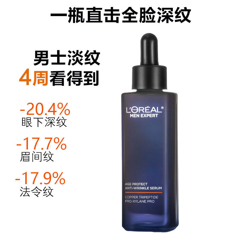 欧莱雅男士青春肌源淡纹精华液男护肤面部保湿淡纹紧致抗皱抗皱