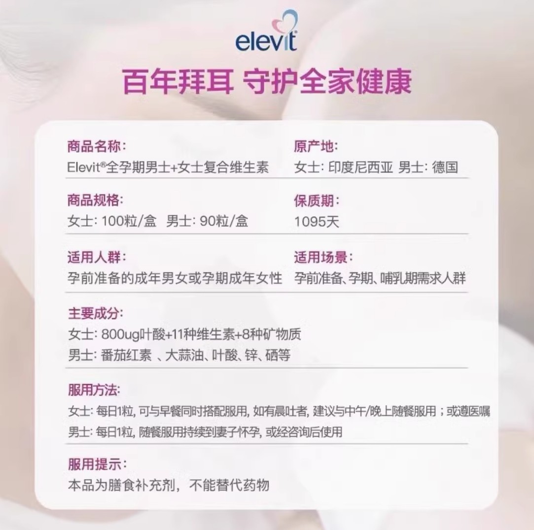 Elevit爱乐维 女士澳洲进口 孕妇营养素女性备孕 叶酸 100片