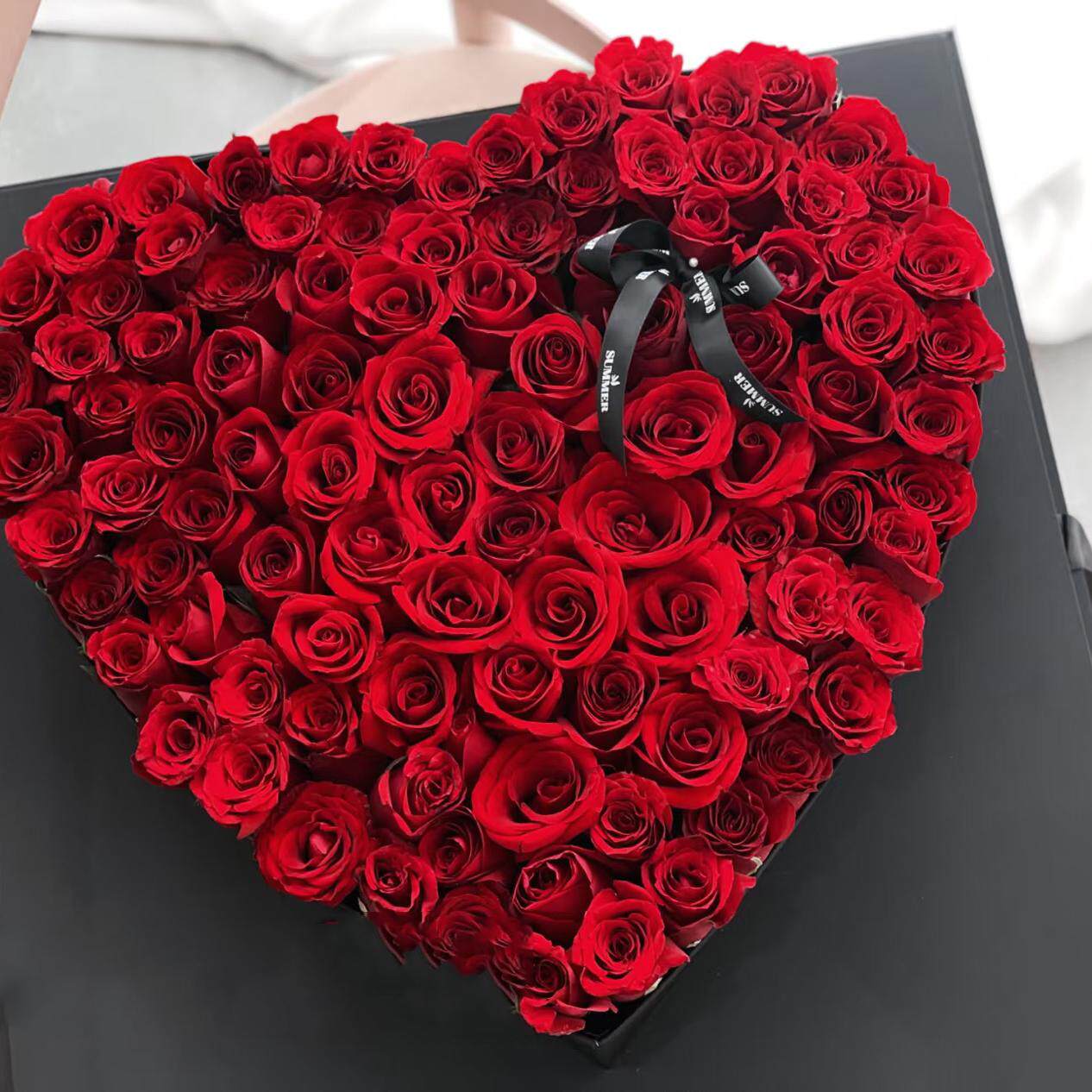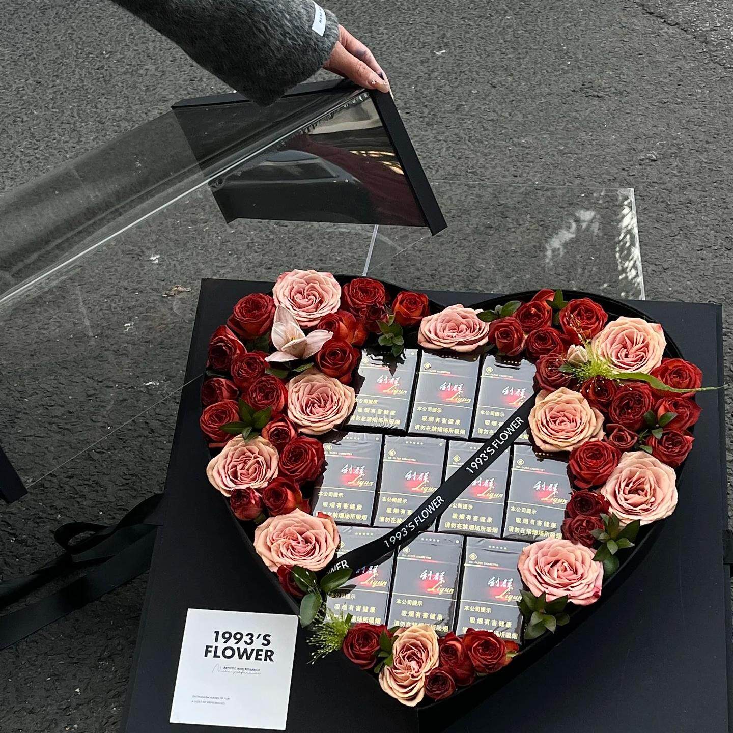 喜洋洋大号透明亚克力天心盒99支鲜花包装盒心形插花礼盒水果花盒