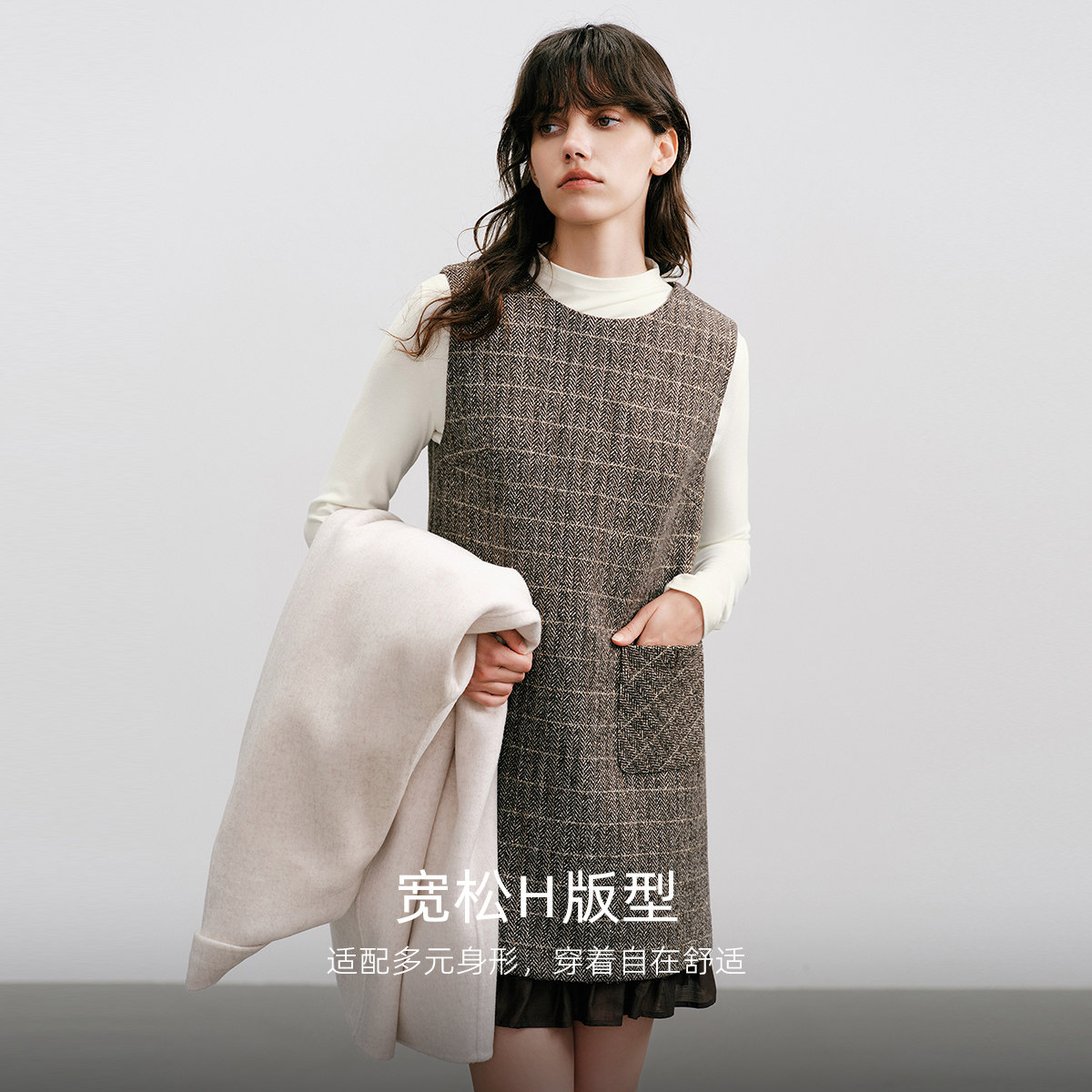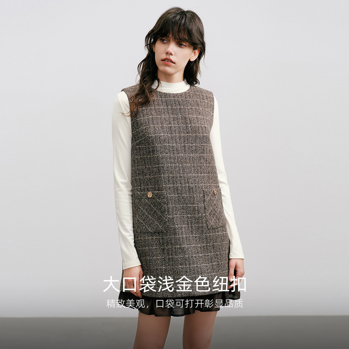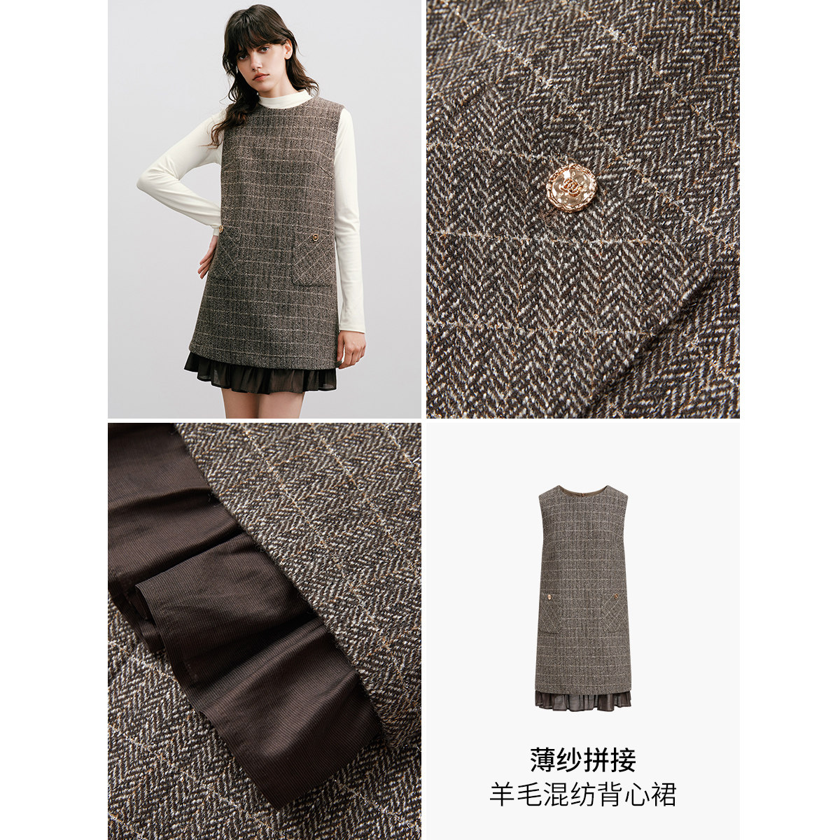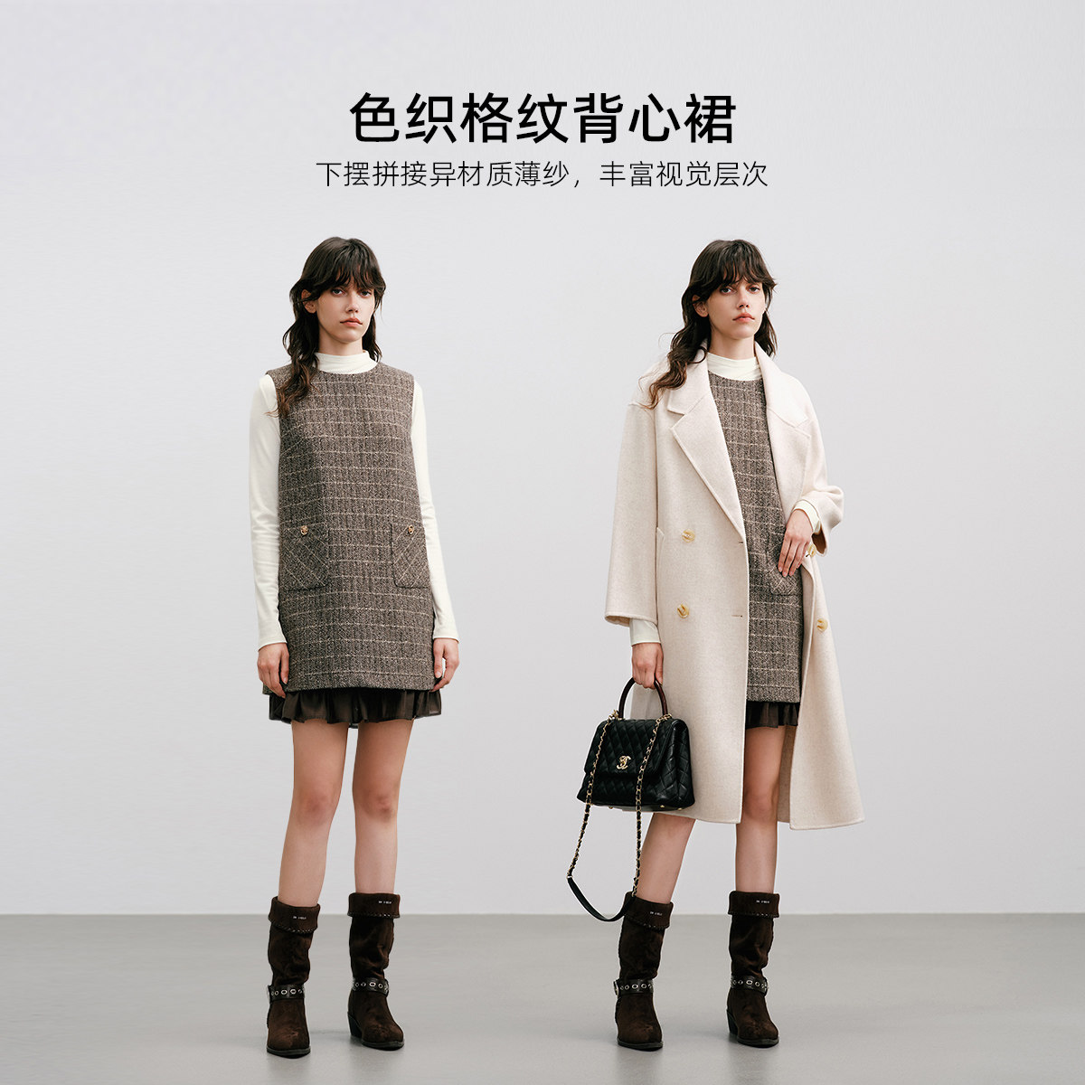 KBNE法式学院风绵羊毛无袖连衣裙女2025秋季新款复古气质背心裙子