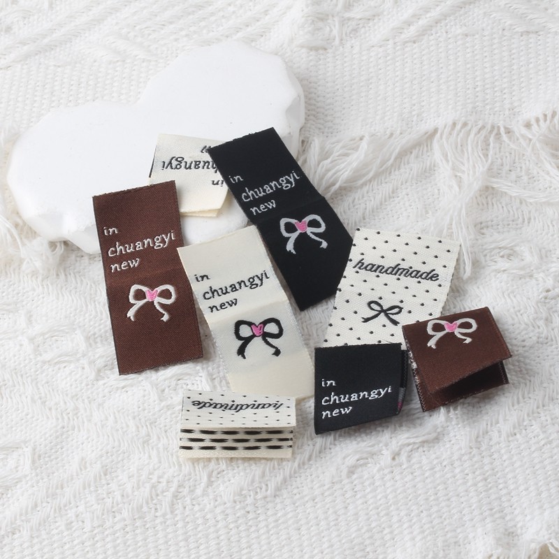 ins风蝴蝶结字母对折标签织唛布标布贴手工DIY发圈服饰装饰等配件
