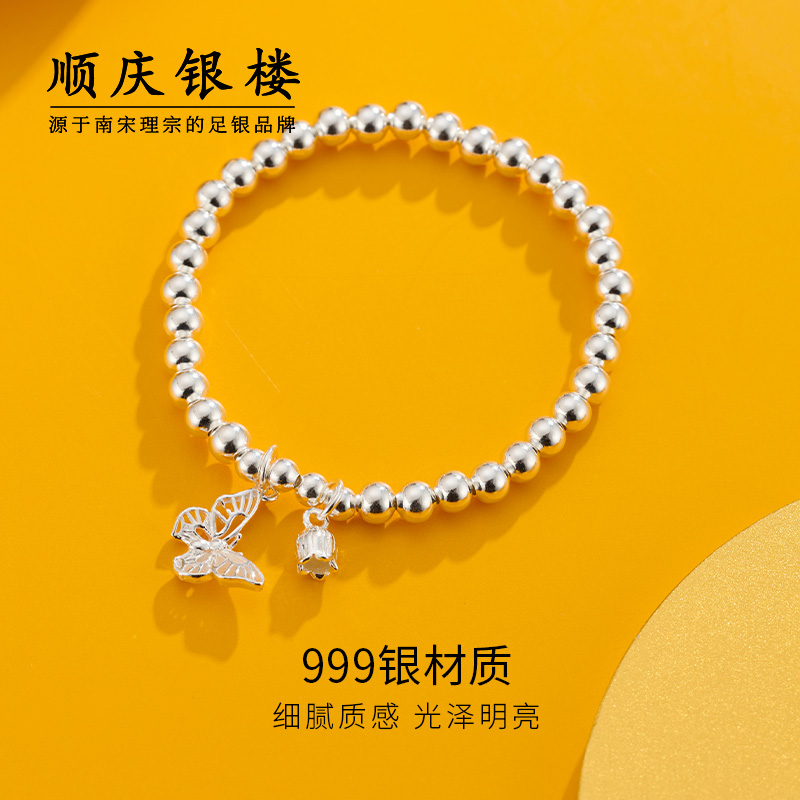 顺庆银楼S999纯银手链女夏蝴蝶珠珠银手串2025新款轻奢小众送女友