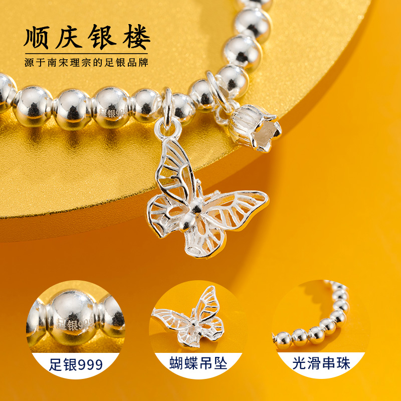 顺庆银楼S999纯银蝴蝶珠珠手链