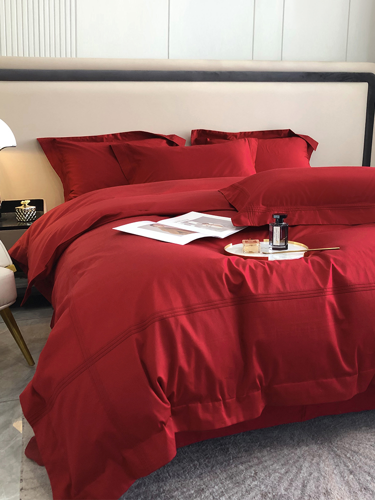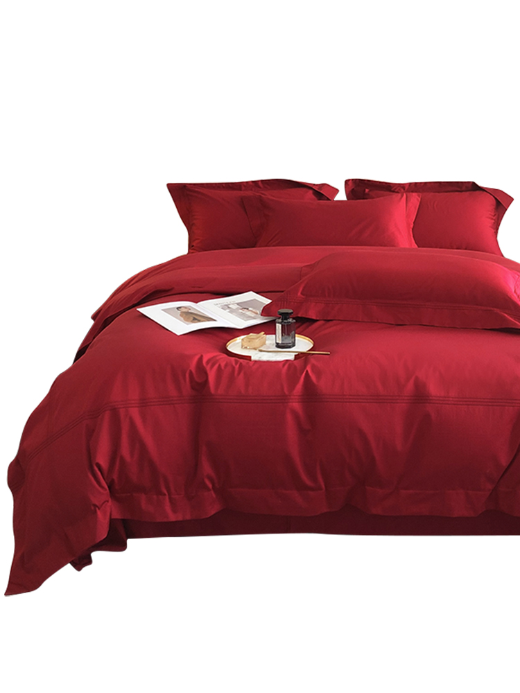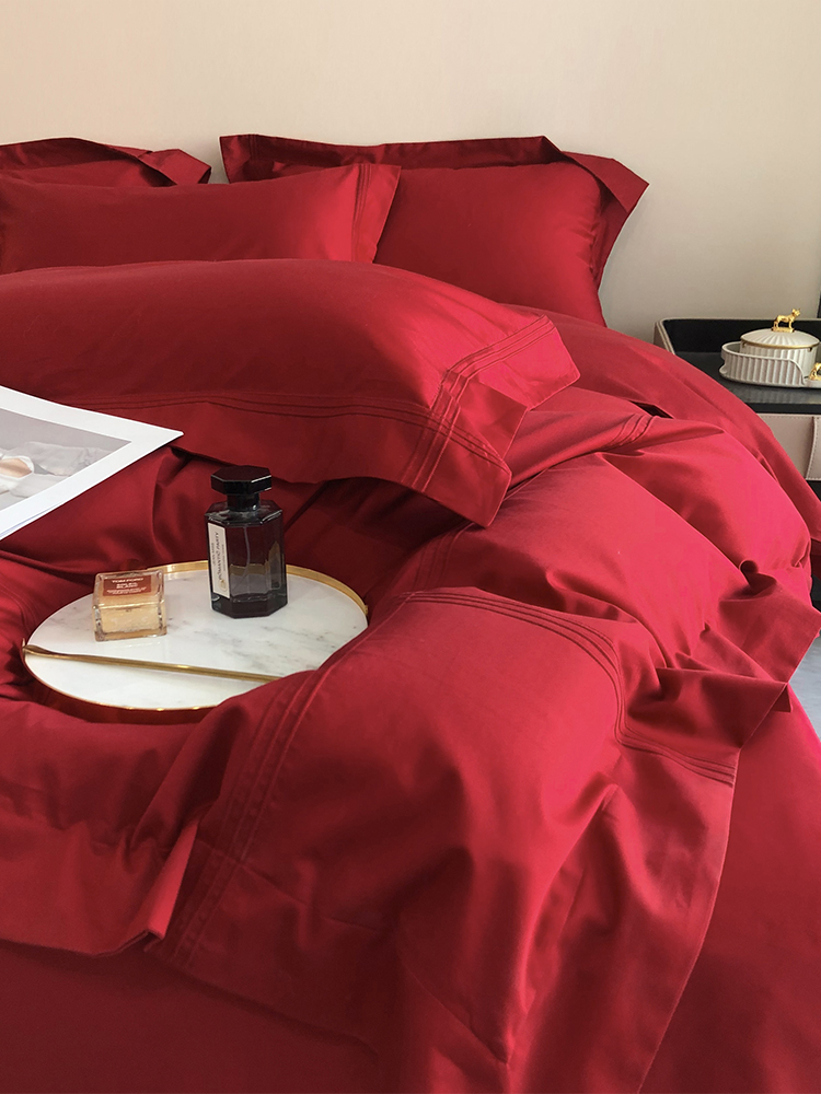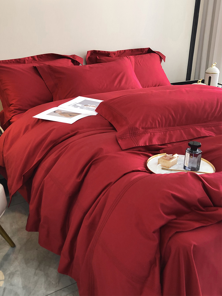 结婚床单婚嫁床上用品纯棉婚庆大红色100棉长绒棉四件套轻奢纯色
