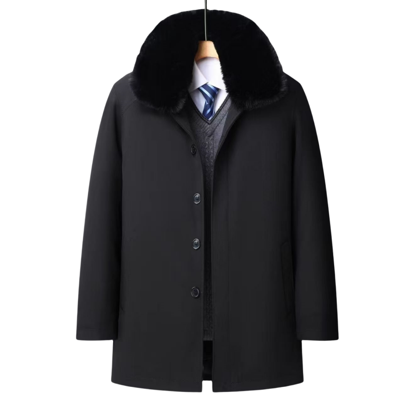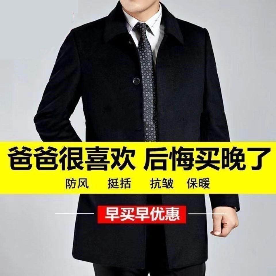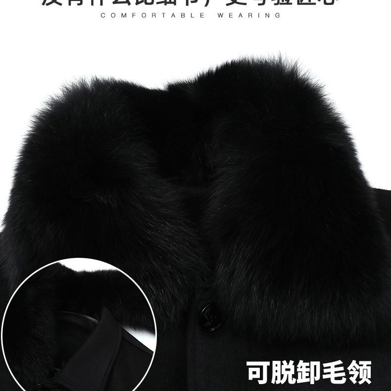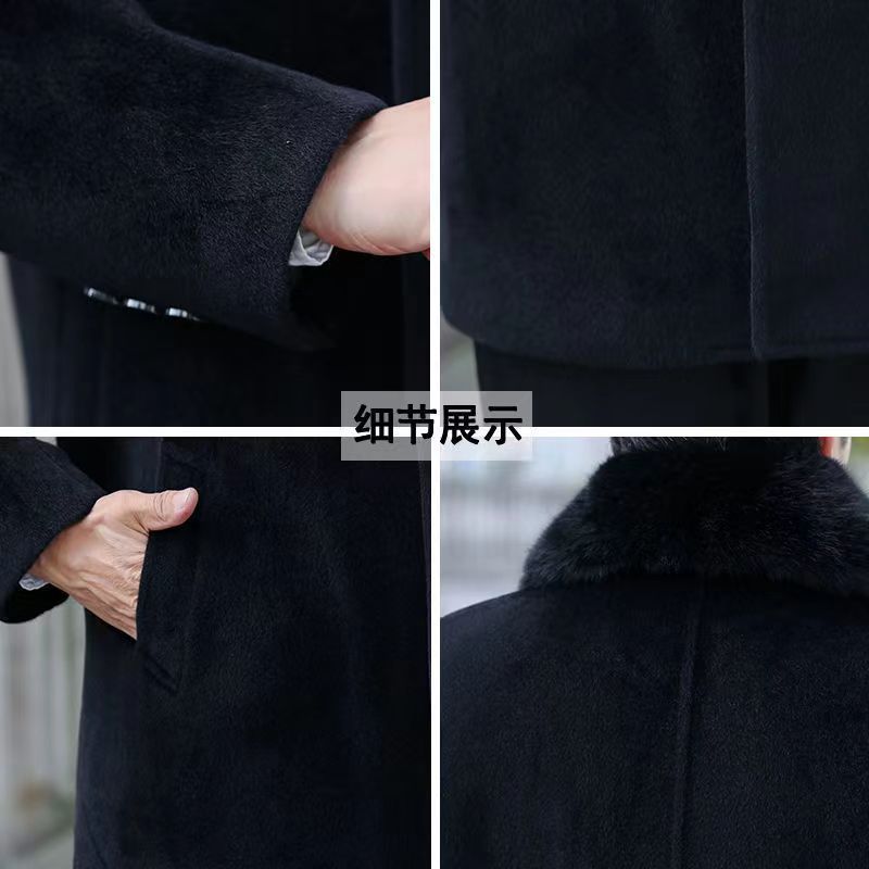 加绒加厚羊毛呢子大衣长款爸爸装中年人中长款可拆卸毛领外套棉衣