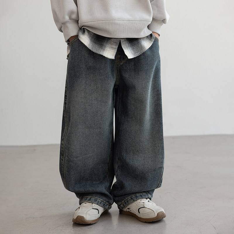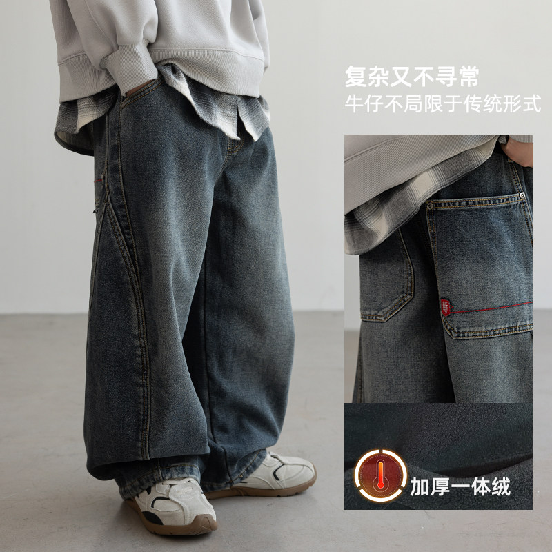 男童加绒牛仔裤秋冬款2025新款儿童冬季一体绒加厚裤子大男孩冬装