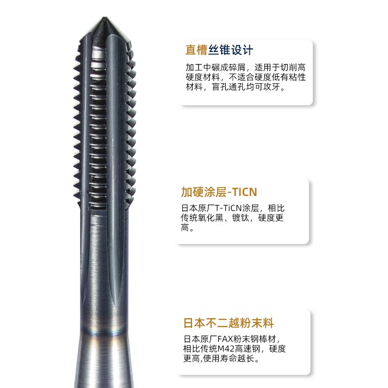 进口CPM粉末加大直槽丝锥P20高硬度加工热处理不锈钢机用直槽丝攻