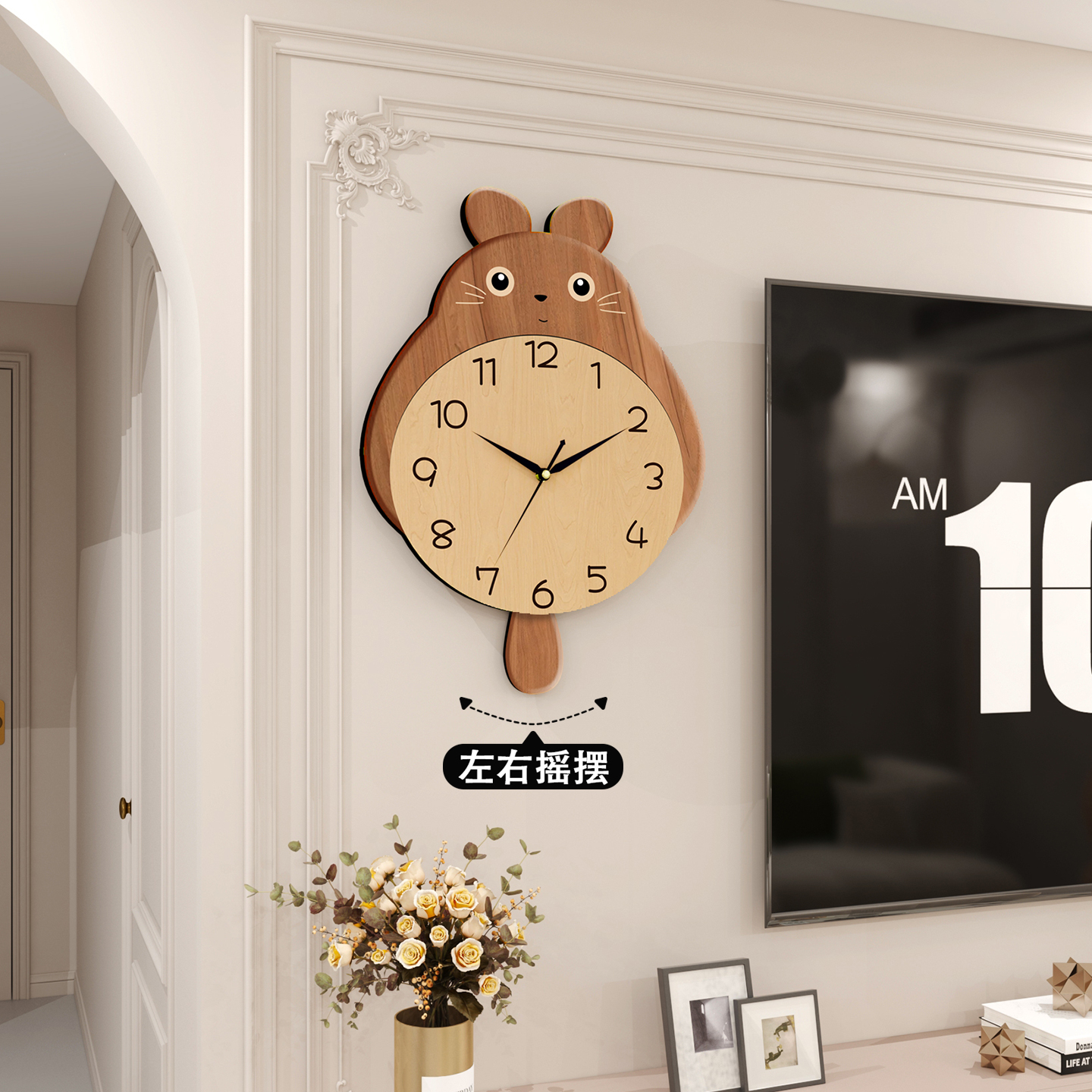 龙猫挂钟客厅新款钟表家用创意挂墙时钟装饰静音摇摆石英钟万年历