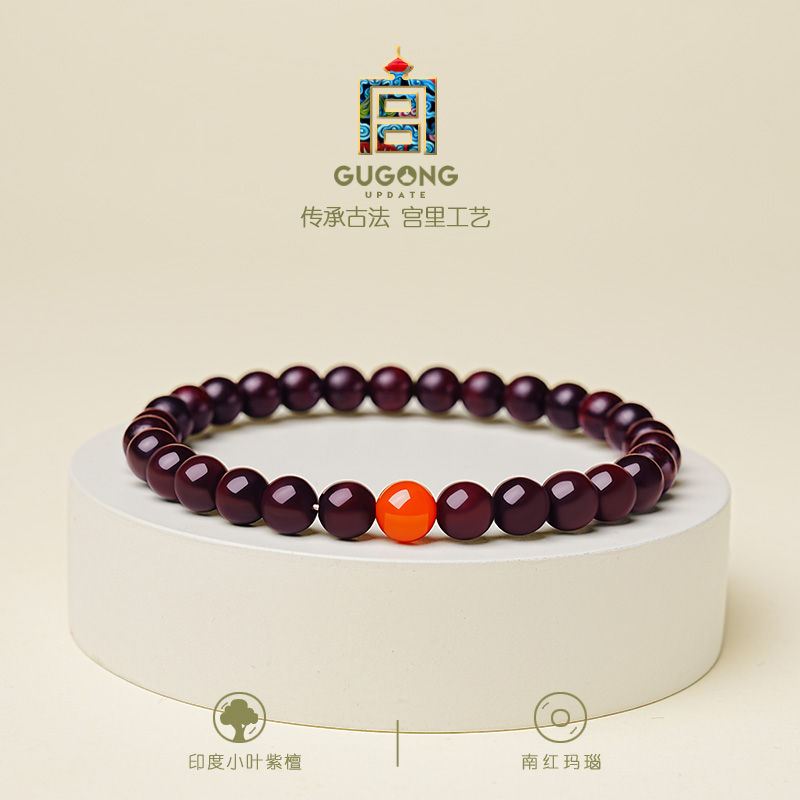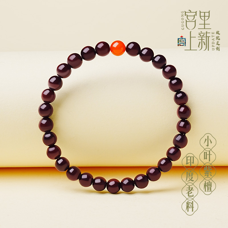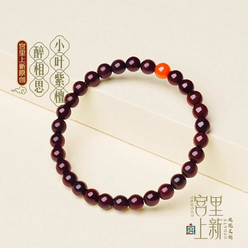 宫里上新小叶紫檀手串女款天然檀木手链红玛瑙木质女士生日礼物