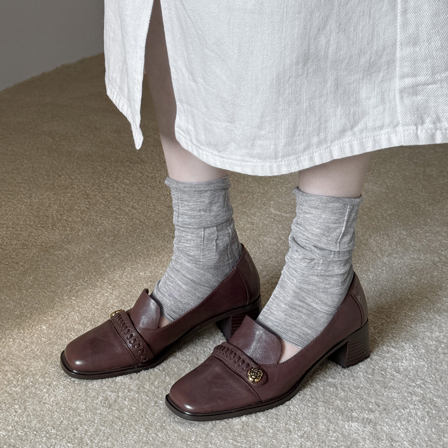 英伦风复古时尚2025年新款方头粗跟中跟乐福小皮鞋百搭气质单鞋女