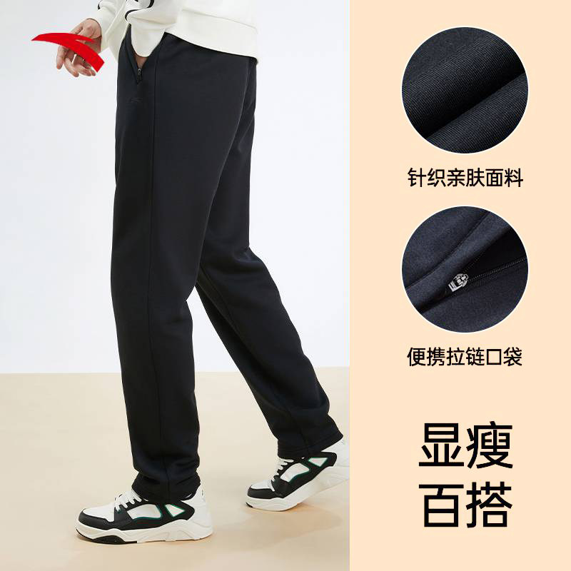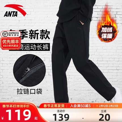 安踏运动裤男裤男款裤子冬季新款官方男士加绒直筒长裤卫裤休闲裤