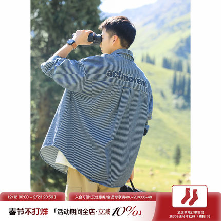 吕小虎青少年牛仔条纹长袖衬衫男春季新款高级感衬衣翻领外套上衣