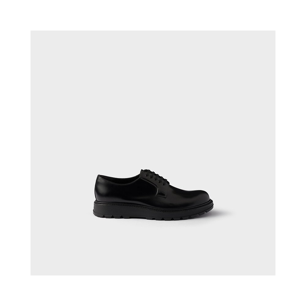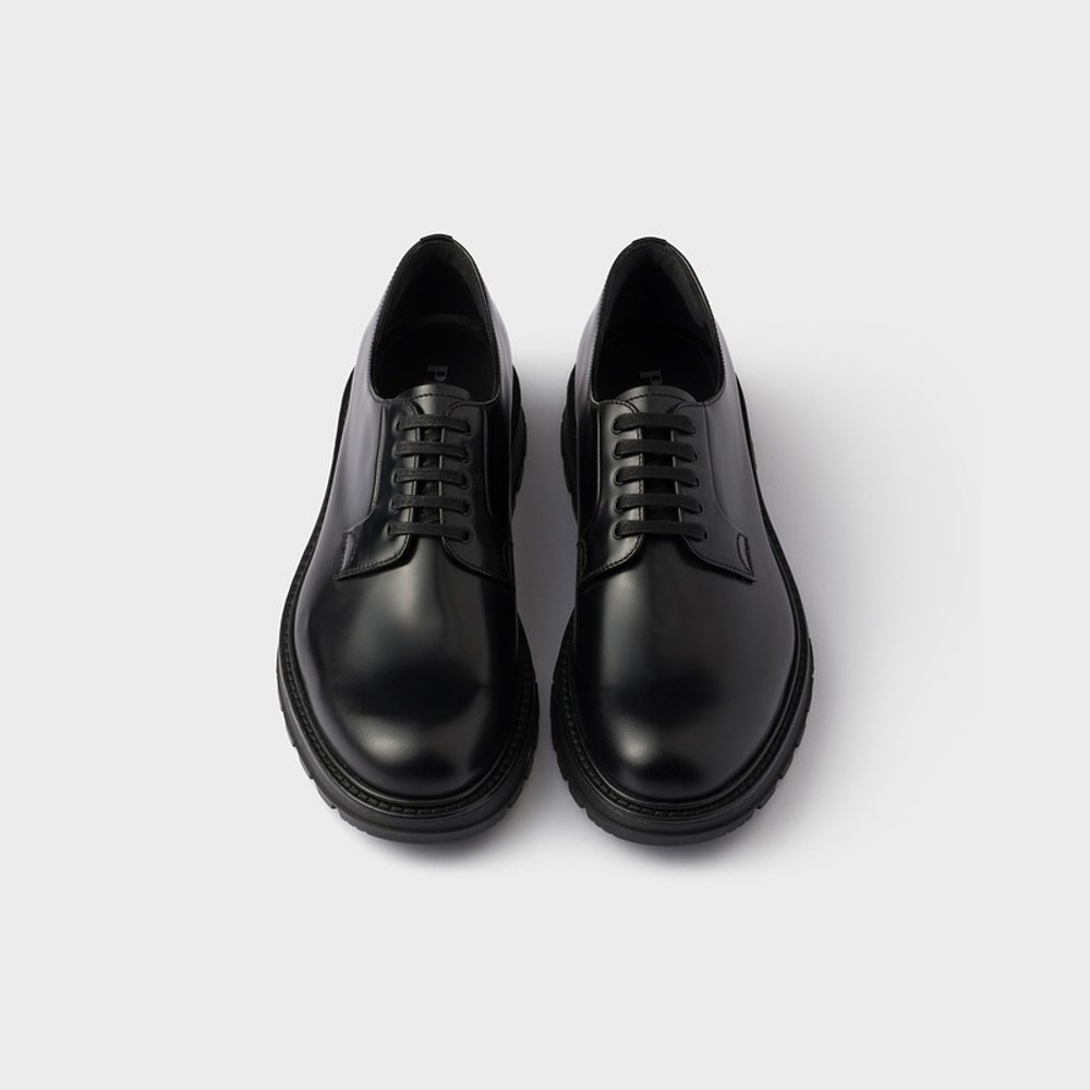 自营欧洲直邮Prada普拉达 男士黑色小牛皮系带皮鞋男鞋