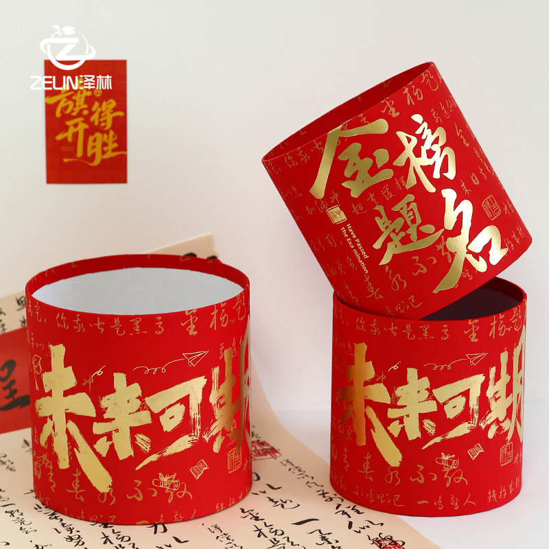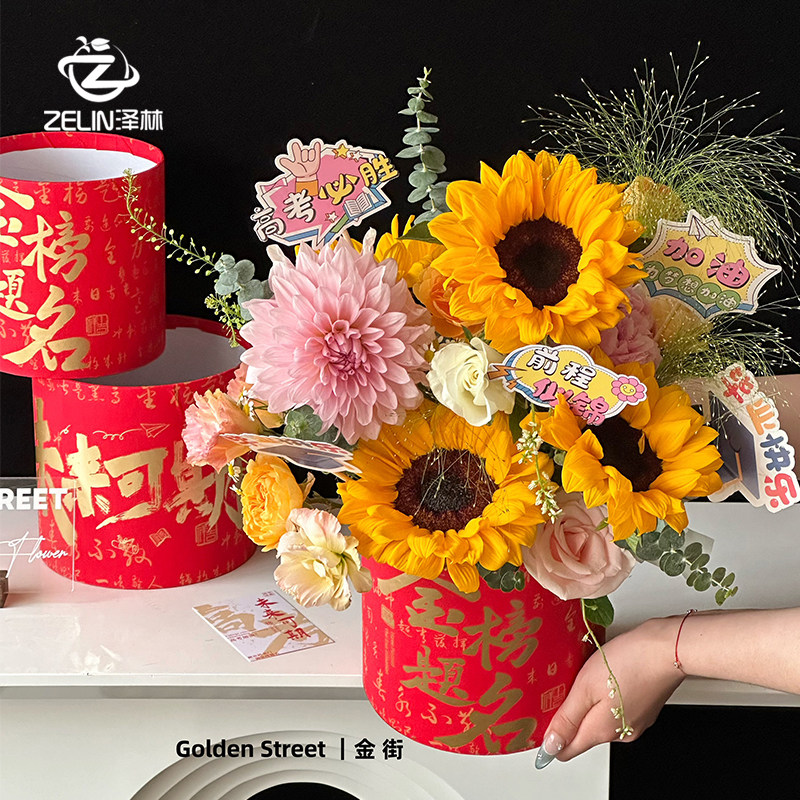 泽林新款毕业季高考礼物鲜花抱抱桶红色烫金金榜题名套二花盒礼盒