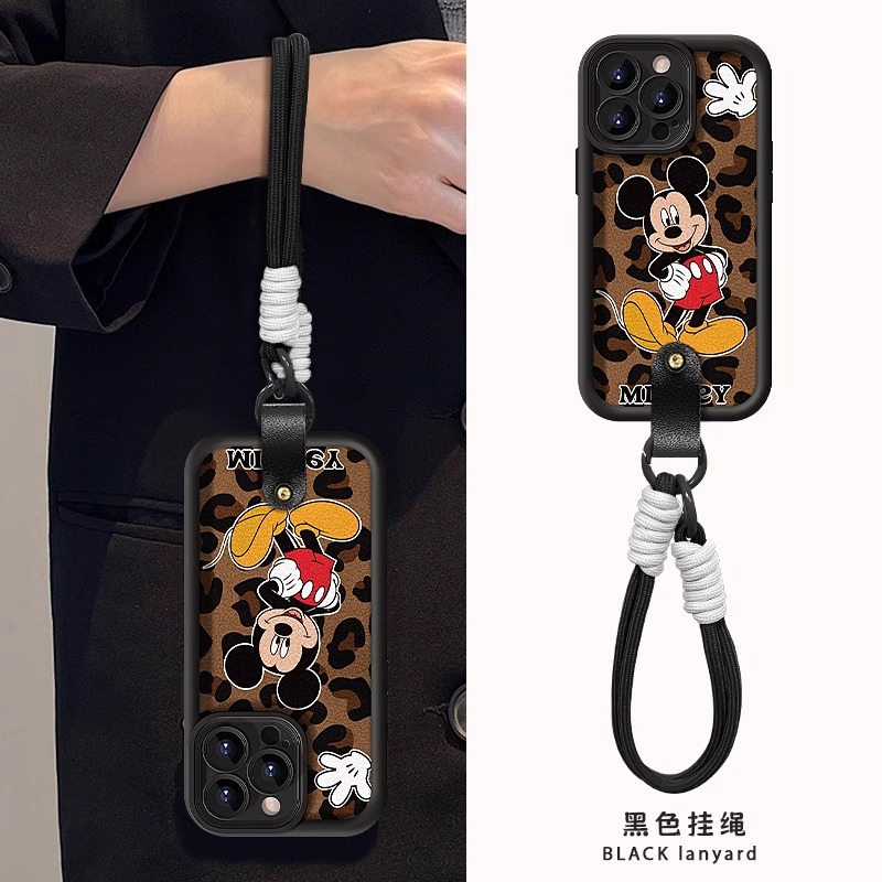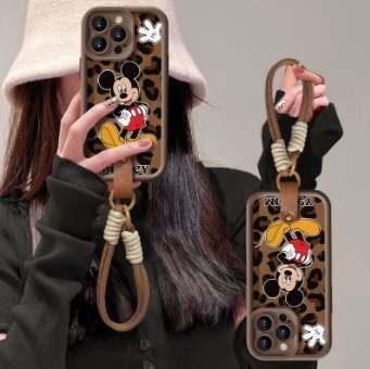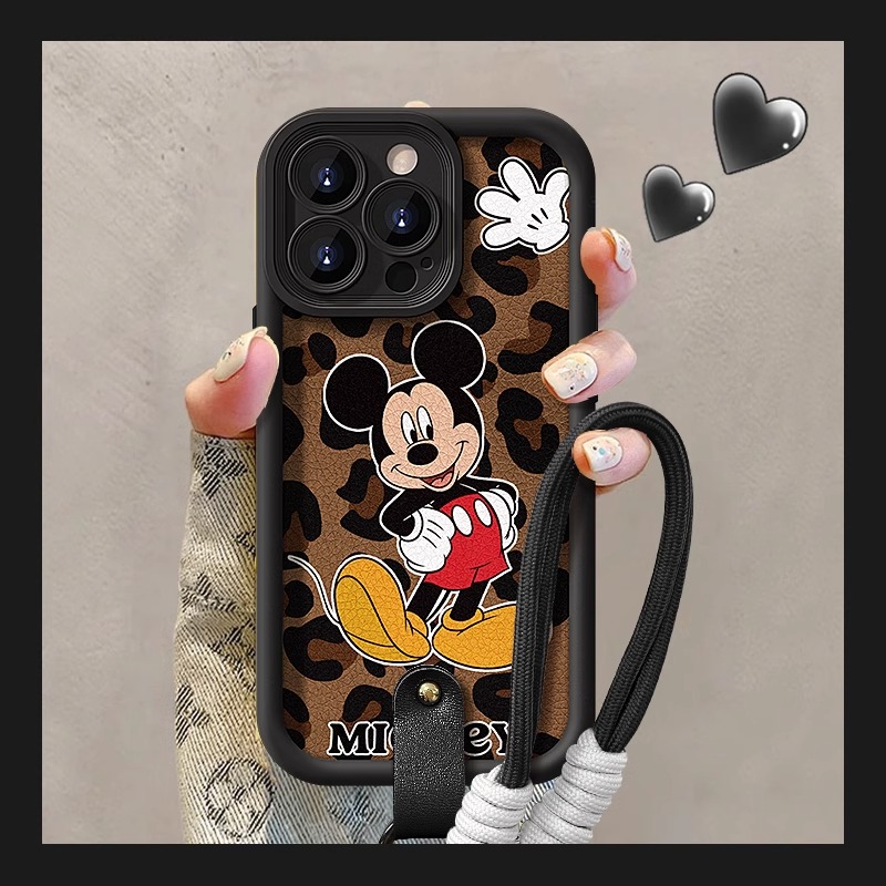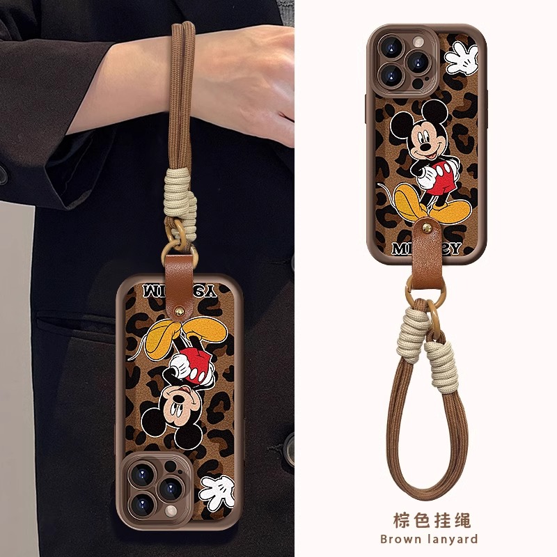 可爱米奇适用苹果16promax手机壳iPhone15promax保护套复古14p咖色小羊皮13pro美拉德11腕带挂绳12秋冬防摔女