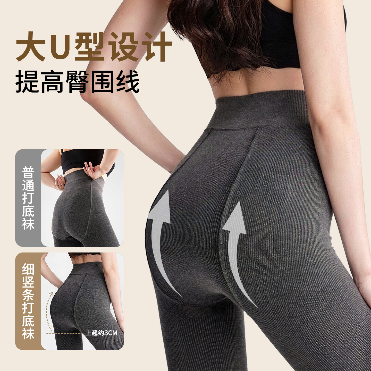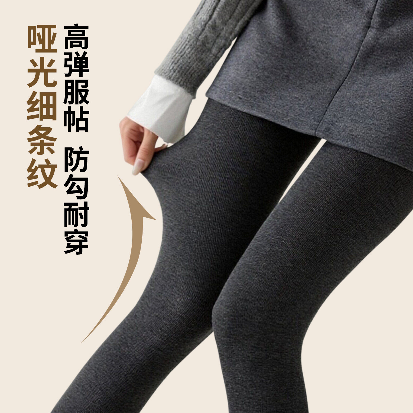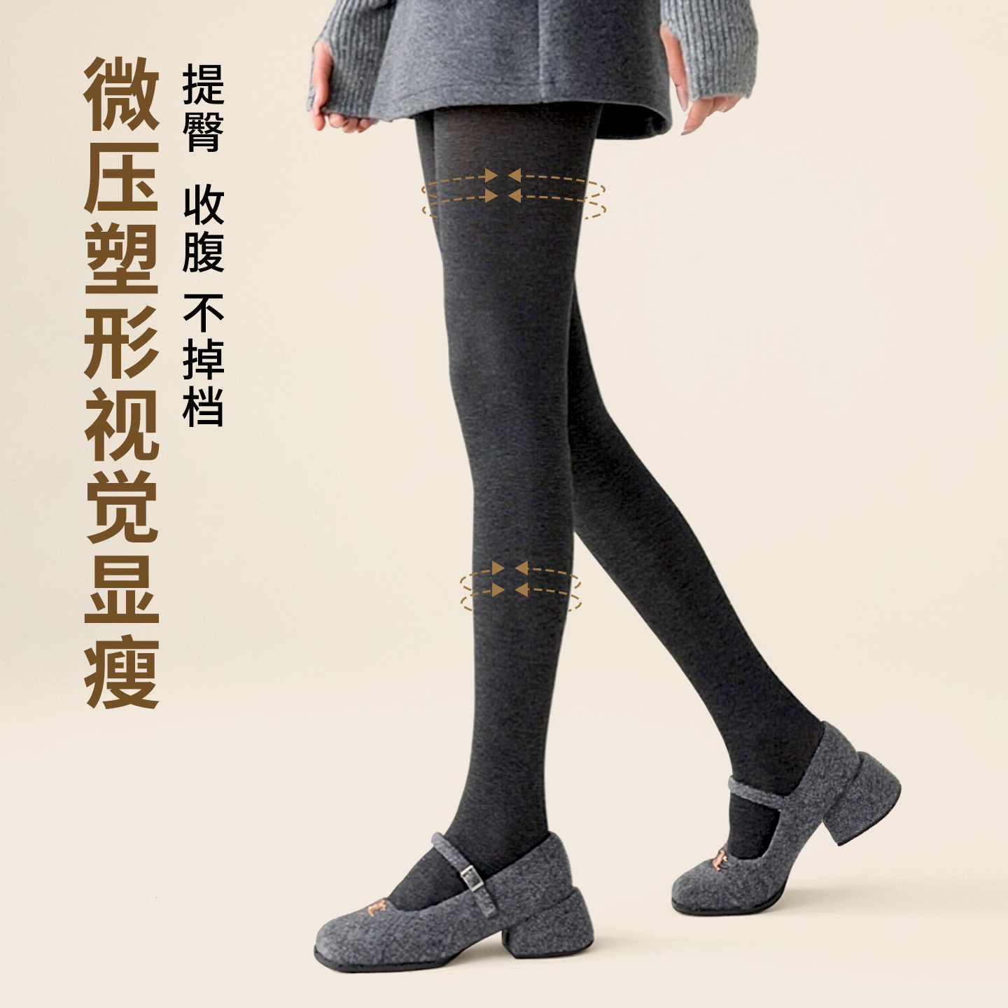 小辣椒miu系秋冬细竖条纹压力显瘦灰色打底裤一体加绒加厚连裤袜