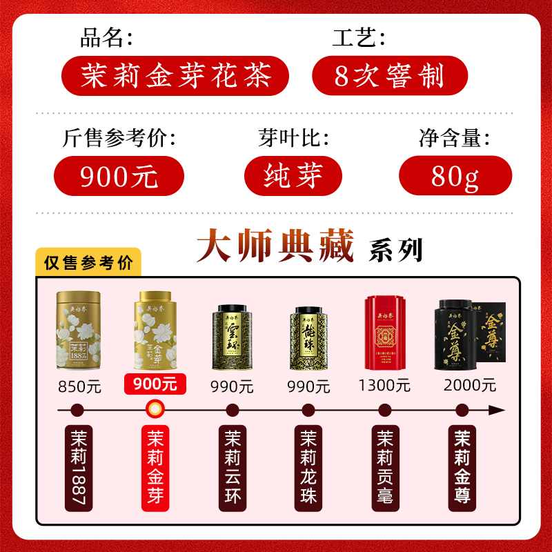 吴裕泰中华老字号金芽非遗八窨茉莉花茶叶特种级全芽茶80g新罐装