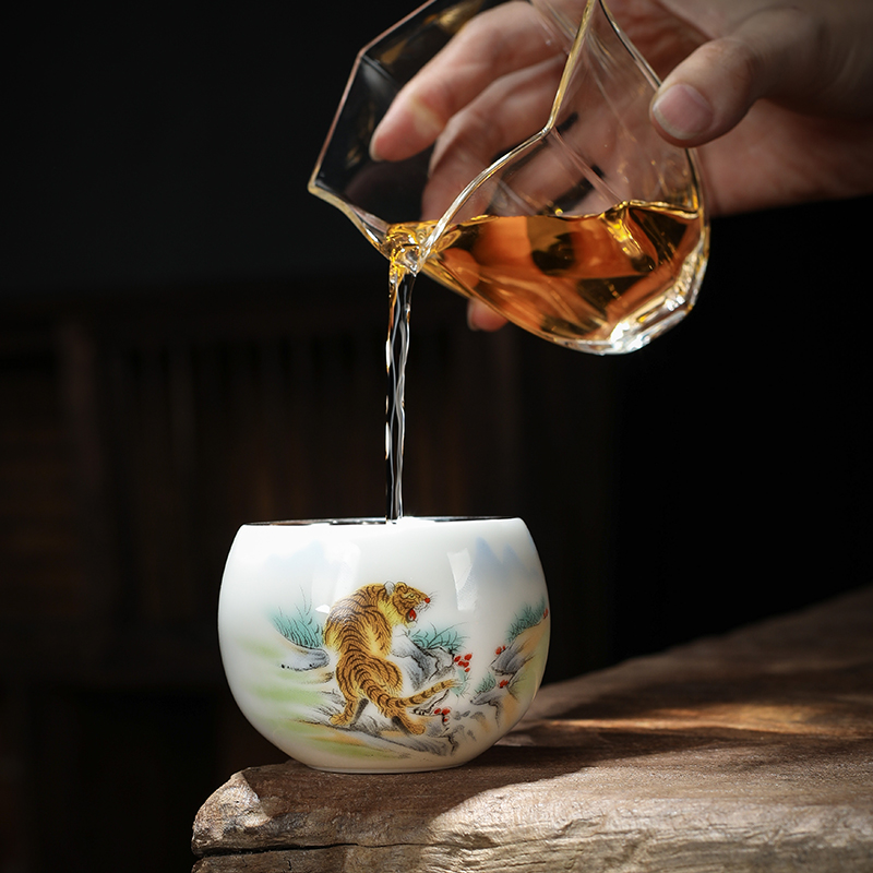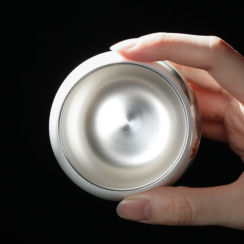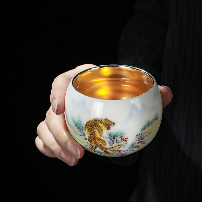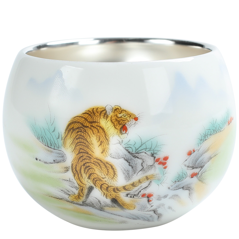 999纯银茶杯主人杯鎏银十二生肖茶杯陶瓷手绘单杯品茗杯功夫茶具