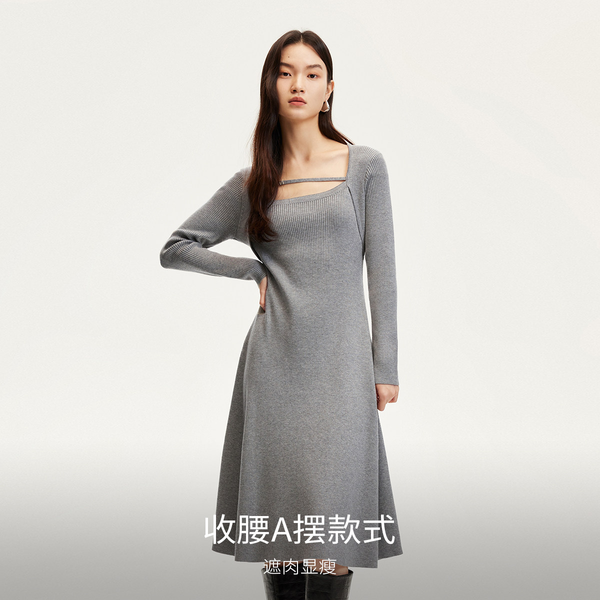 Vero Moda奥莱针织连衣裙秋冬新款微弹罗纹假两件收腰A摆优雅流行