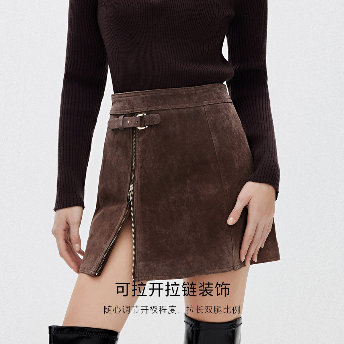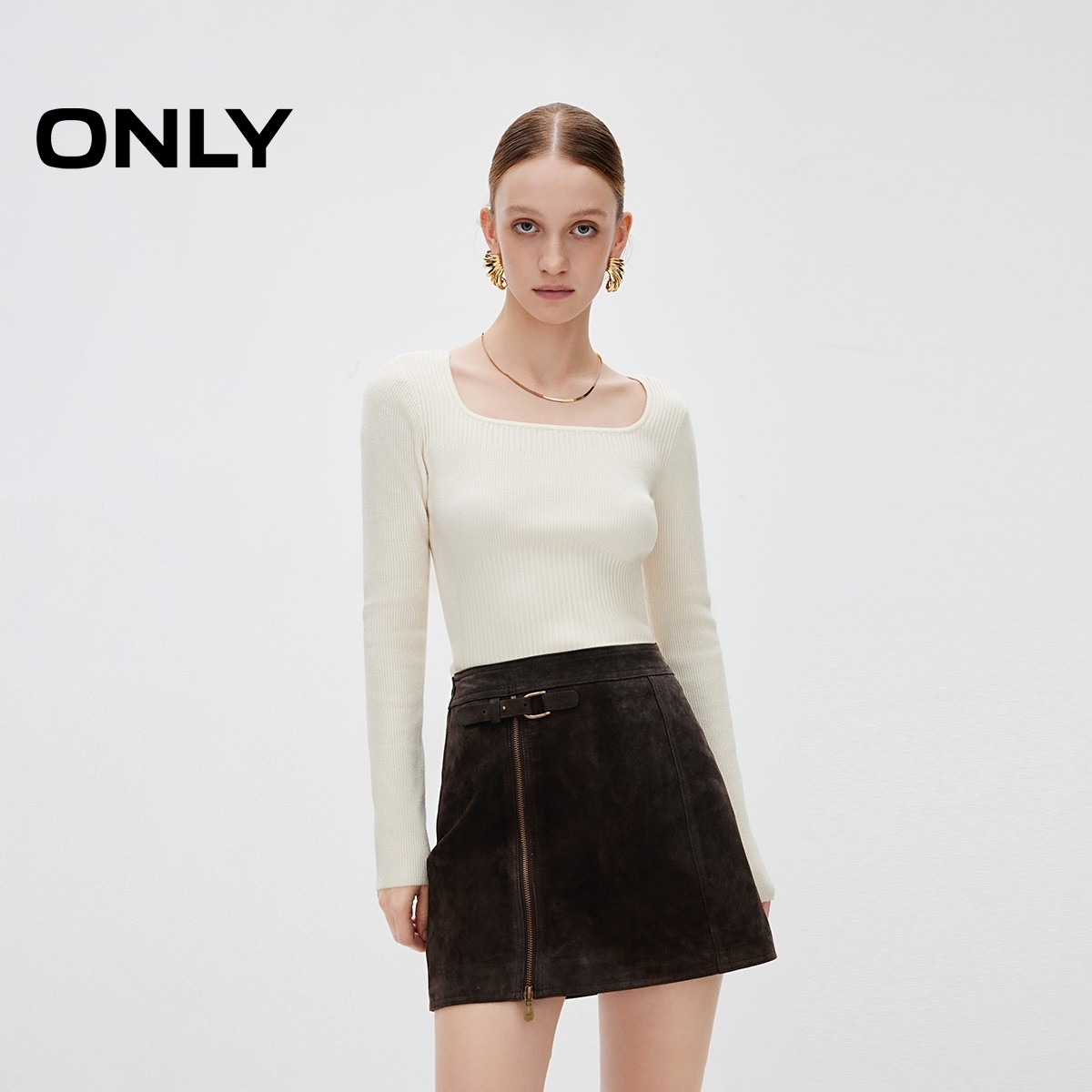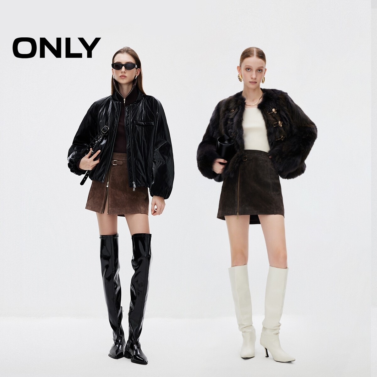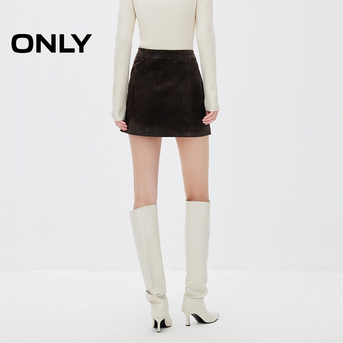ONLY奥莱2025秋冬新款气质高腰显瘦A字短裙皮裙半身裙女