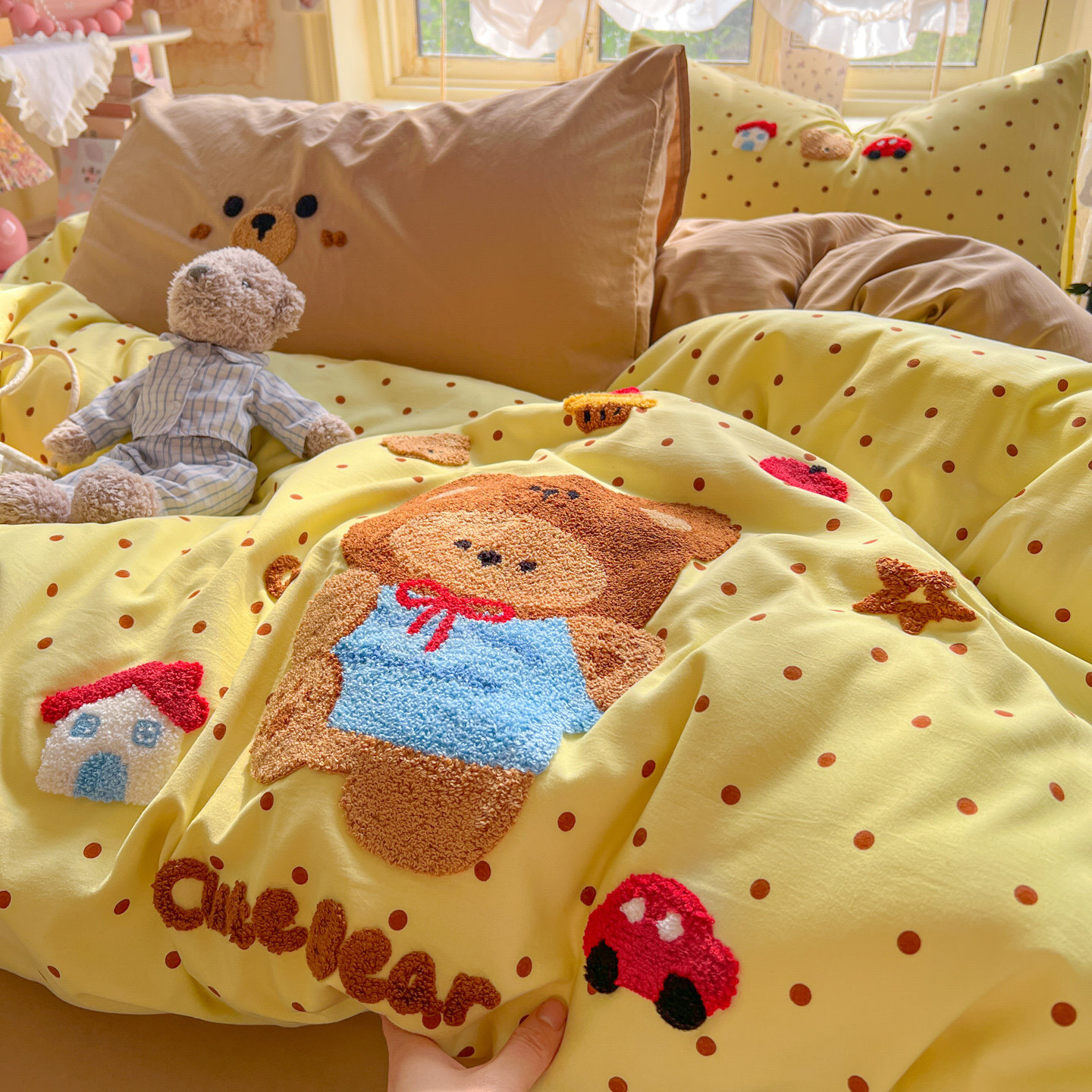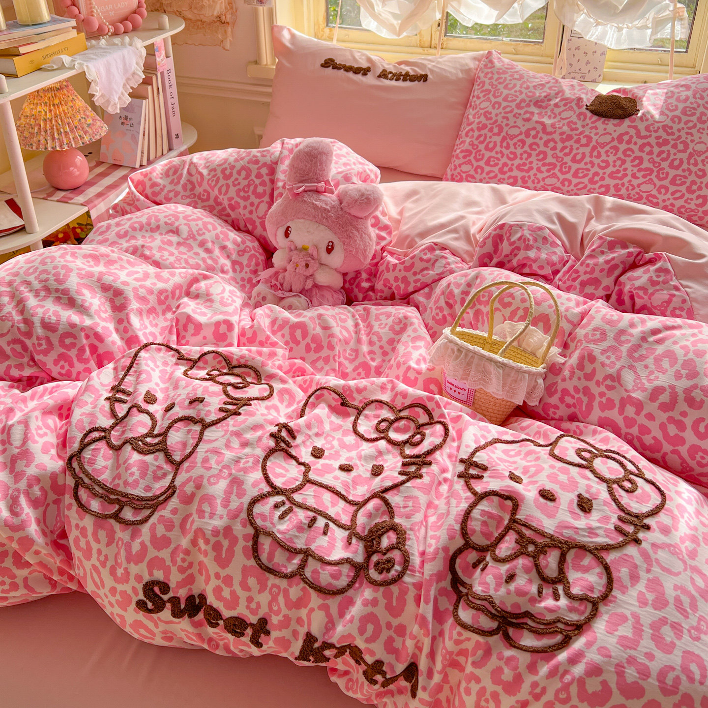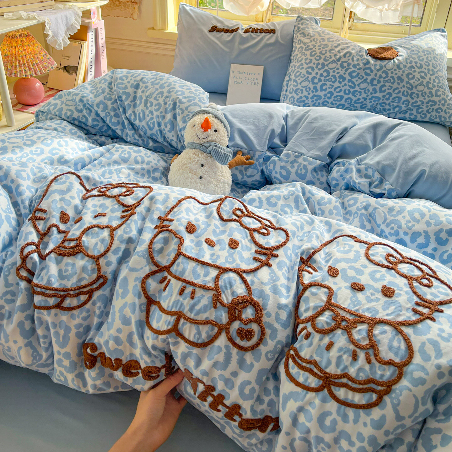 豹纹全棉四件套床品可爱卡通纯棉学生儿童三件套床单被套床笠被罩