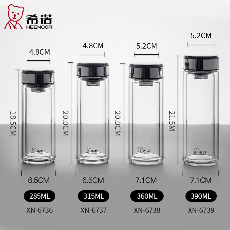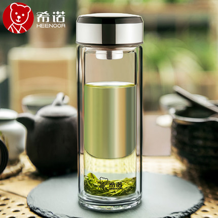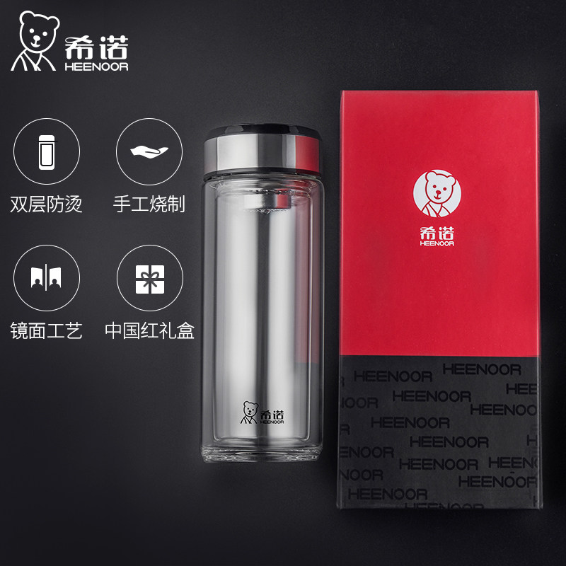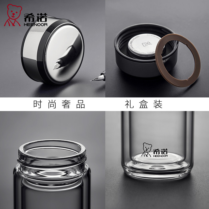 希诺双层玻璃杯高档男士加厚防烫隔热透明过滤泡茶水杯子耐高温