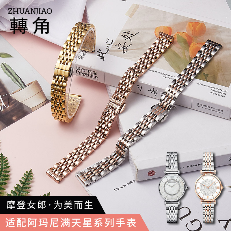 小绿表手表带女款金属钢带适配罗拉卡西欧阿玛尼DW欧聚利时手表链