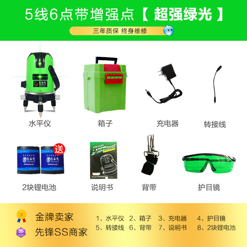 红外线绿光水平仪2线3线5线6点 打线激光投线仪充电蓝光室外强光