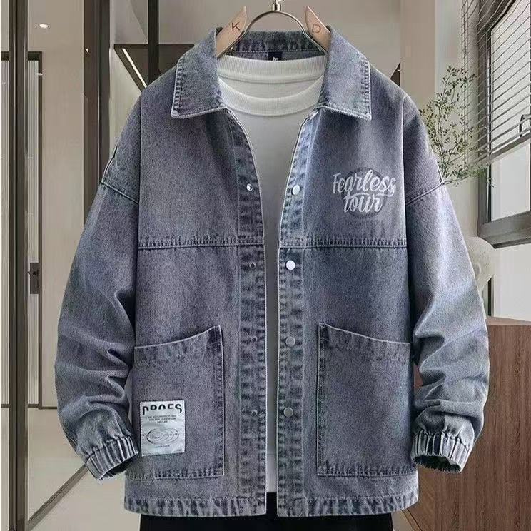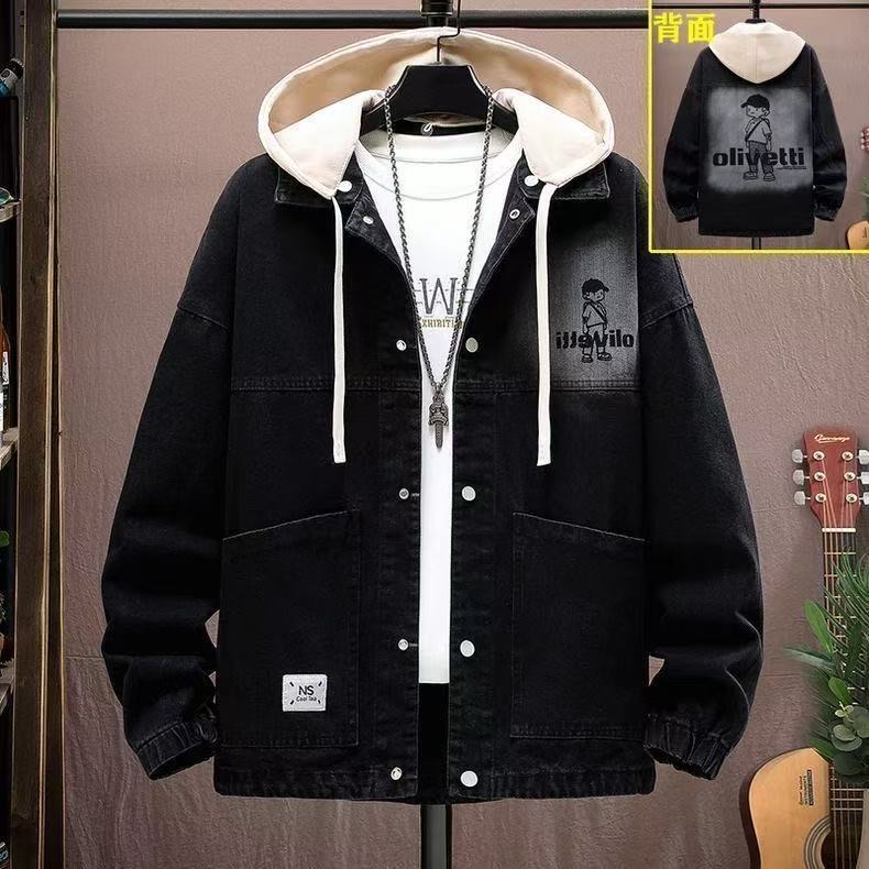 假两件牛仔外套男春秋新款青少年潮牌宽松痞帅夹克初高中学生褂子