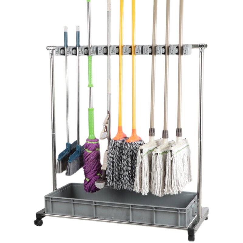 不锈钢可移动拖把架子落地式阳台拖布清洁工具收纳扫把墩布沥水架
