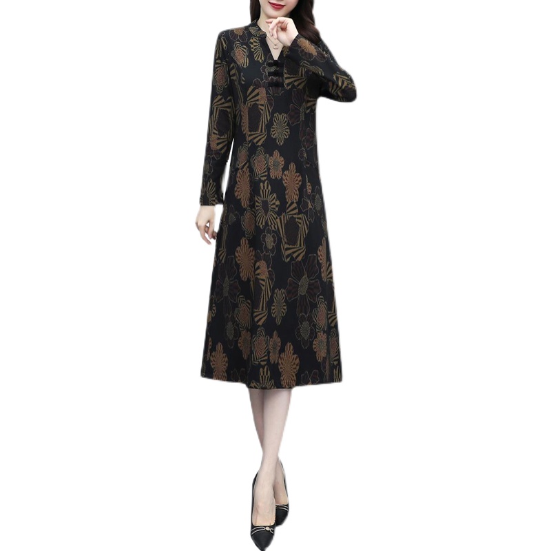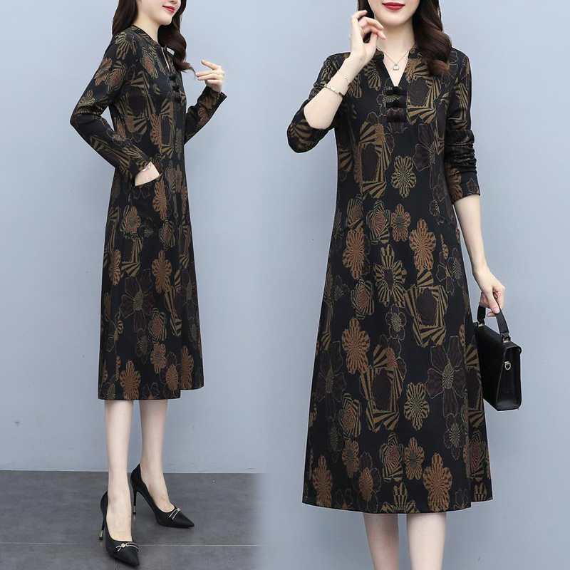 阔太太秋季长袖连衣裙女2024年大码显瘦遮肚子高端大气复古旗袍裙