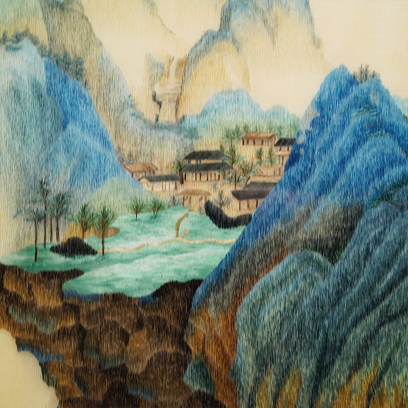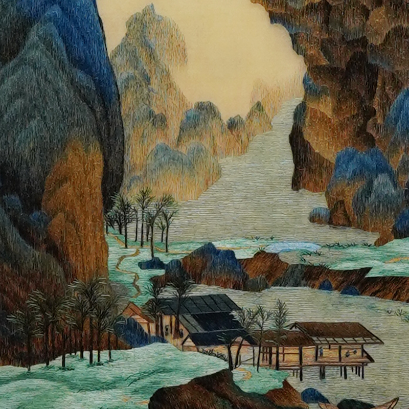 苏绣挂画新中式千里江山水纯手工刺绣玄关走廊过道客厅装饰画成品
