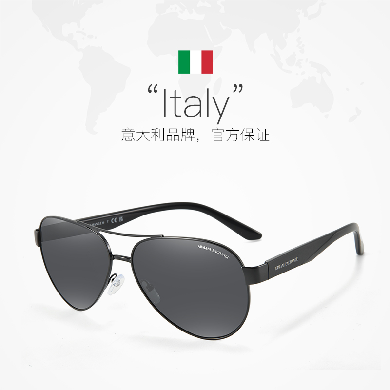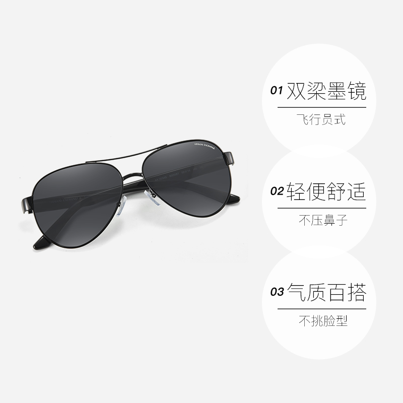 【自营】ARMANI阿玛尼墨镜男士开车双梁金属飞行员款太阳眼镜2034