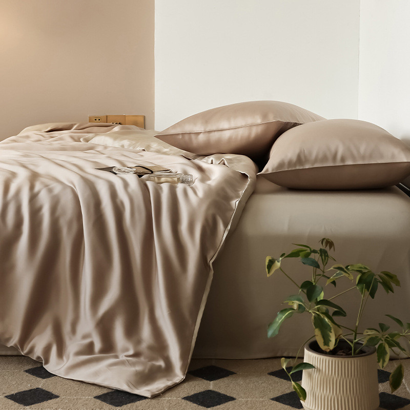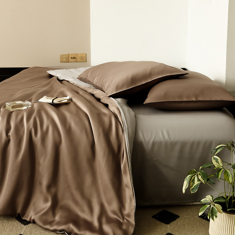 2u8k轻奢感夏季兰精天丝四件套冰丝酒红色床单被套滑裸睡夏天床品