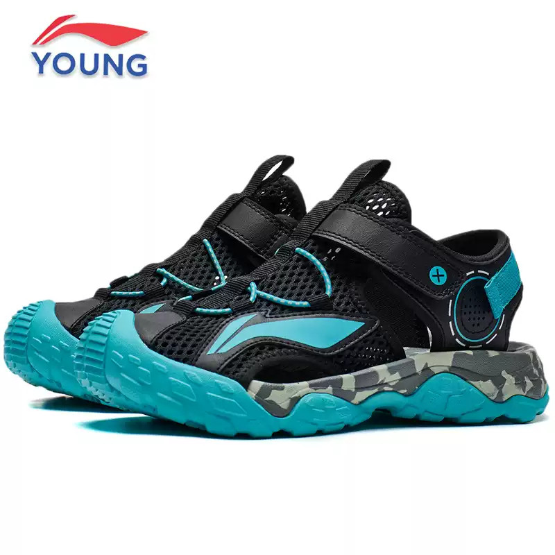 李宁男童鞋2025夏季新款中大童网面透气时尚休闲运动儿童包头凉鞋