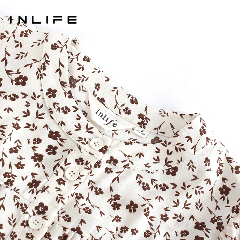 伊纳芙气质高级连衣裙春季女2025新款碎花通勤长裙巨显瘦长袖裙子