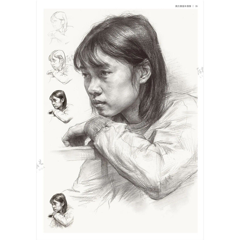 南方素描半身像 2020励尚文化霍星光 头带手半身像步骤对照临摹美术高考联考范画教程教材人物头像肖像画册范本人像书籍