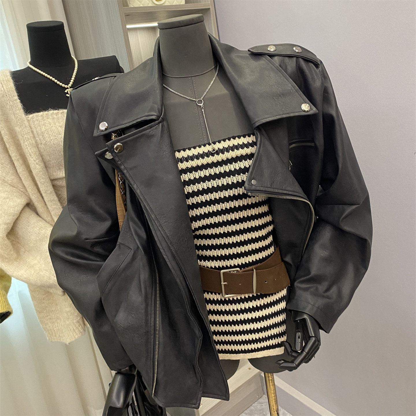 特价秋季新款韩版复古机车皮衣女高级感翻领拉链长袖PU夹克外套潮