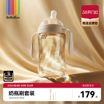 BeBeBus钻光奶瓶ppsu歪头防胀气防呛奶3-6个月以上用断奶大奶瓶