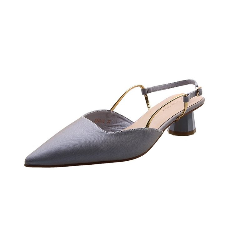 法式绸缎气质低跟包头凉鞋女鞋春季新款中跟鞋子尖头单鞋女高跟鞋
