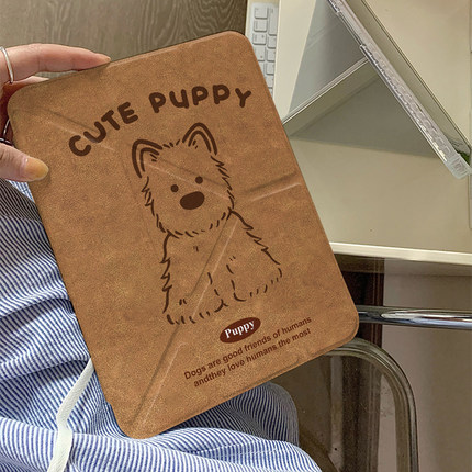秋冬绒皮西高地Y+三折适用ipad11保护套air7/6新款ipad10带笔槽11寸防摔10.2/10.9苹果平板保护套mini7女款