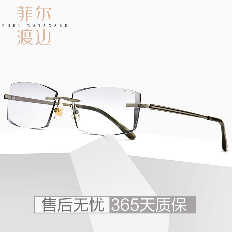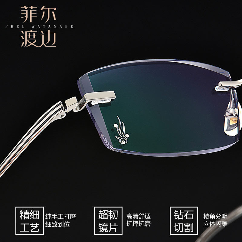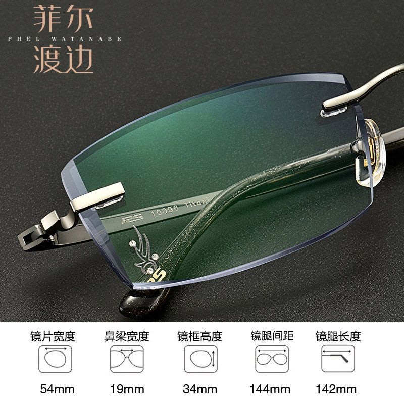 钻石切边眼镜镶钻男士无框宽脸大脸近视镜架钛架眼镜框配镜10096