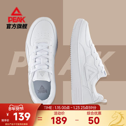 匹克板鞋男秋冬新款男鞋男士休闲鞋子皮面情侣滑板鞋白色运动鞋女